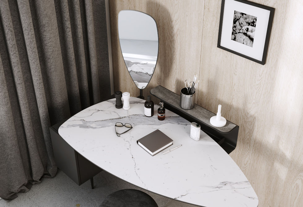 KOKO is an exceptional piece of furniture that not only provides functionality but also impresses with its unique design. Its versatility and adaptability to various needs make it an ideal solution for small spaces that require optimal space utilization. As a work desk, KOKO offers a comfortable place to conveniently use a laptop, write, or perform various office tasks. With ample storage space for documents and office supplies, maintaining order and organization becomes simpler. However, that's not all - thanks to its unique design, KOKO can also serve as a stylish vanity, adding character and charm to a bedroom or bathroom.
