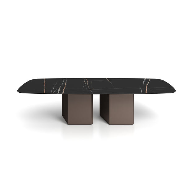 Zenith Duo to wariant stołu z podwójnym stelażem, który nadaje meblowi monumentalnego charakteru. Wykorzystanie podwójnej podstawy nie tylko zwiększa stabilność, ale również wprowadza harmonię między rozmiarem a estetyką, co jest szczególnie ważne w przestronnych wnętrzach. Minimalistyczna, a zarazem efektowna forma stelaża, wykonana z najwyższej jakości materiałów, dodaje wnętrzu nuty luksusu i wyrafinowania.