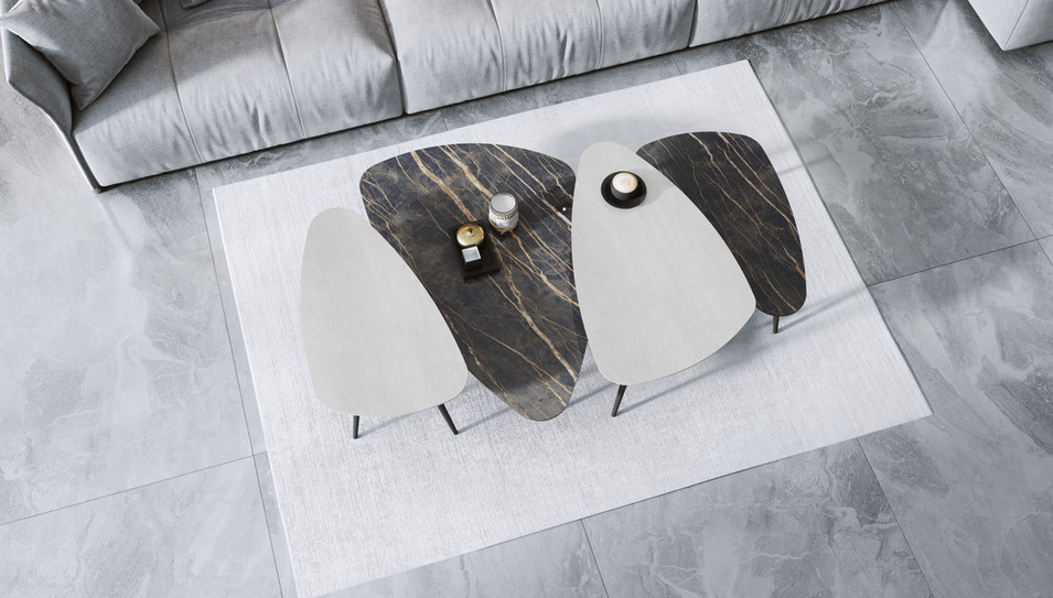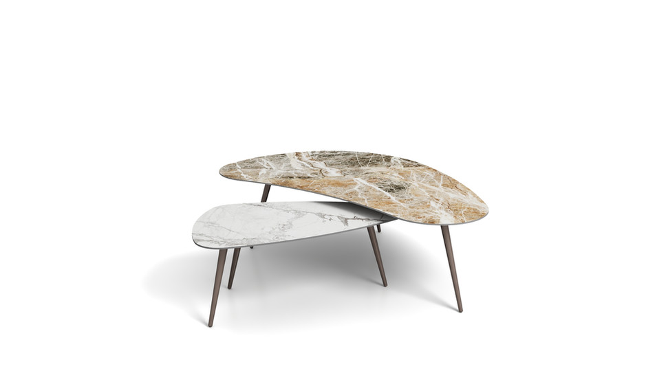 Stoliki MORLO z wysmuklonymi nóżkami dodadzą każdemu wnętrzu niezwykłej lekkości. Przyjazna i nienarzucająca się forma unika oschłości kątów prostych: blaty obłe w kształcie, a nogi wdzięcznie zwężone ku dołowi, rozstawione skośnie dodają uroku kolekcji. Stoliki kawowe MORLO w różnych wariantach wysokości i średnic imitujące naturalne kamienie nadają się do nakładania jeden na drugi. MORLO to stoliki, które nie uznają ograniczeń.